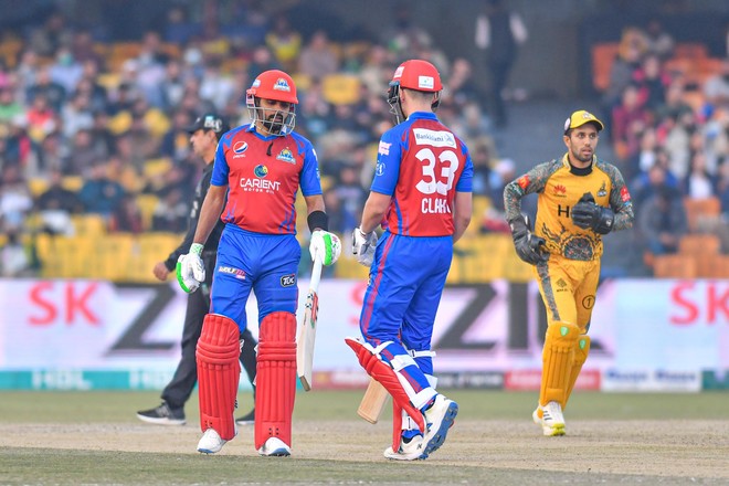 Hazratullah Zazai of Peshawar Zalmi scored 52 runs while Muhammad Haris scored 49 runs. Shoaib Malik of Peshawar Zalmi scored 31 runs and got out on the ball of Chris Jordan. Haider Ali and Ahmed Butt remained unbeaten on one and two runs respectively.